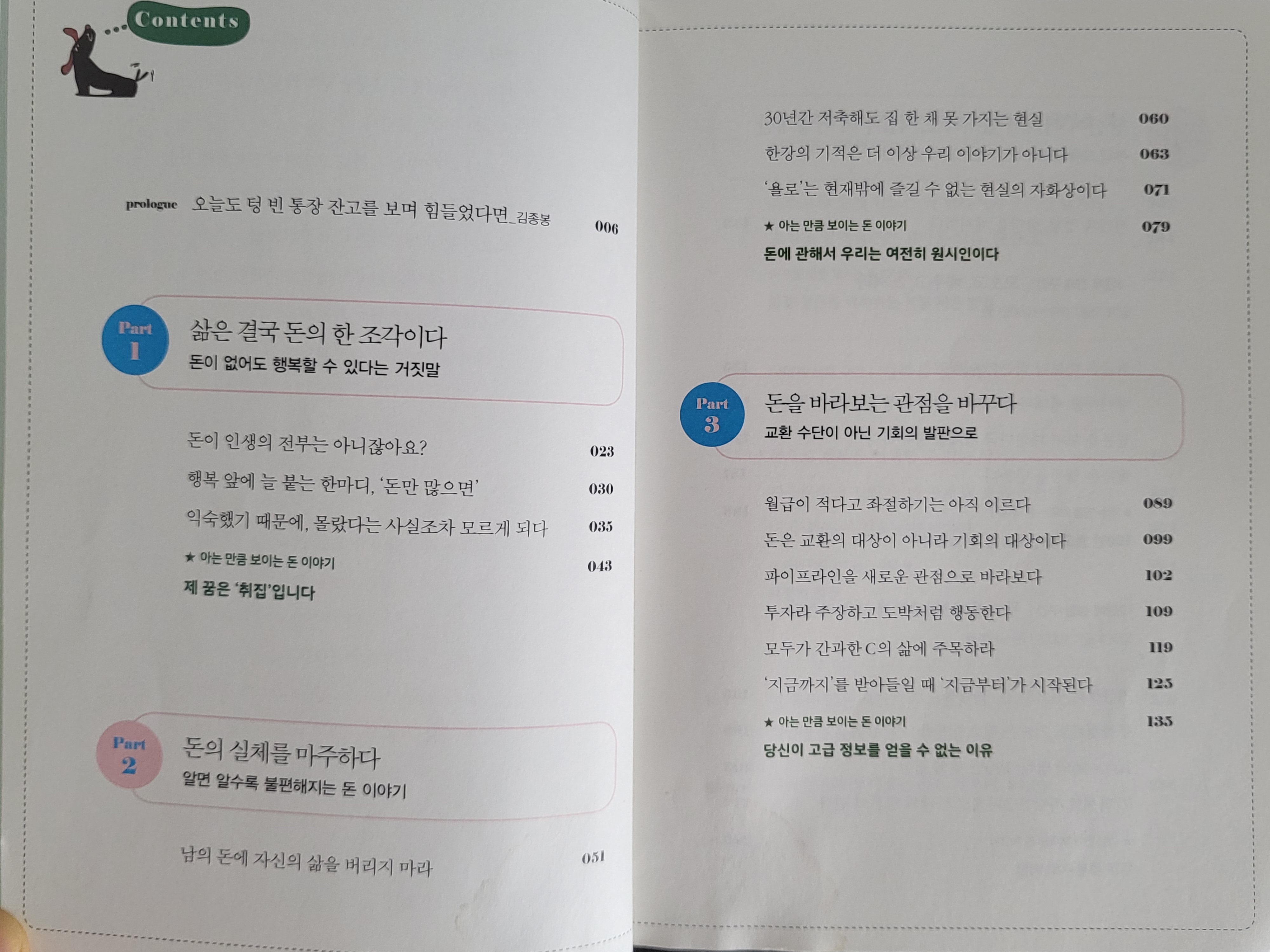 자신만의 방법으로 부를 쌓았거나 쌓고 있다면 큰 도움이 되지 않을 겁니다. 뭐 그런 사람들은 이런 책을 볼 생각을 하지 않을 것 같기도 합니다. 어쨌든 이 책은 저같이 투자를 시작하는 사람들이나 부를 쌓고 싶은데 방법을 모르겠다는 사람들이 읽으면 큰 도움이 될 것 같습니다. 다만 대박을 꿈꾸거나 주식이나 투자 비법을 알고 싶은 사람들에게는 도움이 되지는 않을 듯합니다.