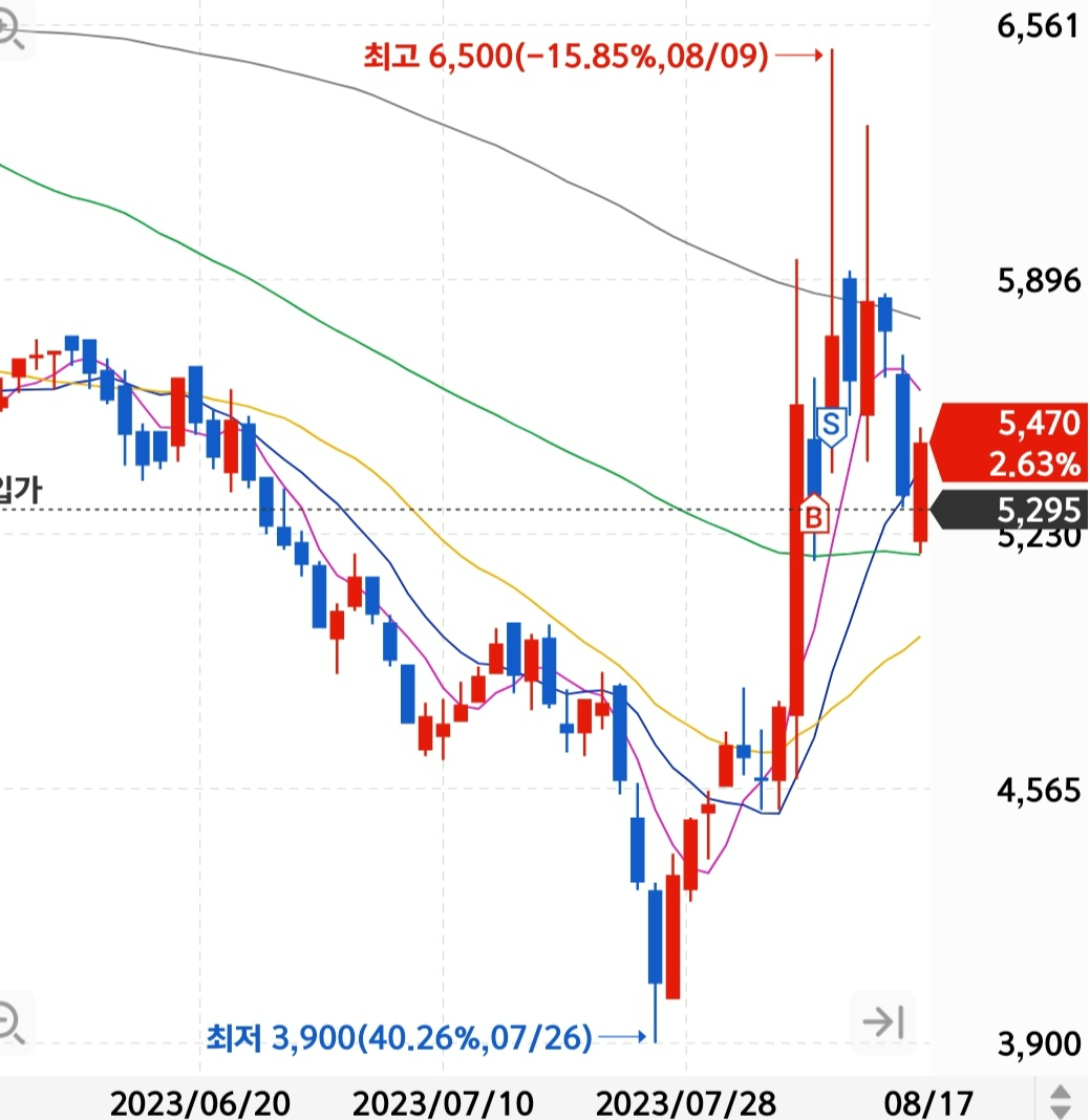 매도 후 더 상승했지만 계획대로 매매했기에 크게 아쉽지는 않습니다. 아쉽게 생각하고 다음 매매에서 욕심부리면 손실로 이어지는 경험을 했었기에 매도 후 상승은 제 영역이 아니라고 생각하고 넘깁니다.
