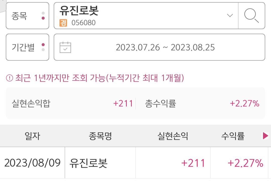 로봇 관련주 유진로봇 주가 및 매매기록 : 수익률 2.27%