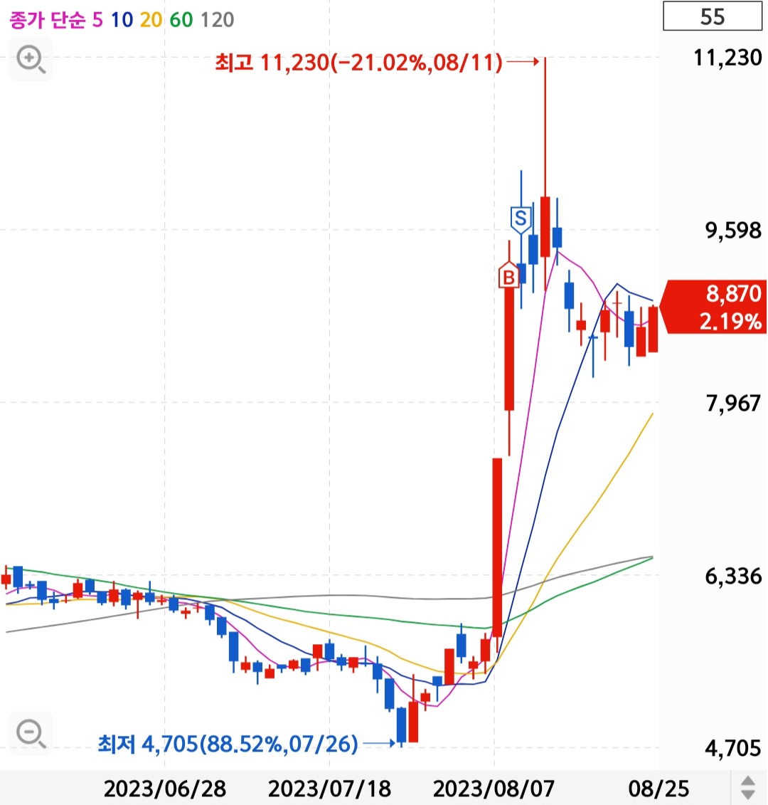 | 코리아나 주가 및 매매기록 : 수익률 4.85% (0) | 2023.08.31 |