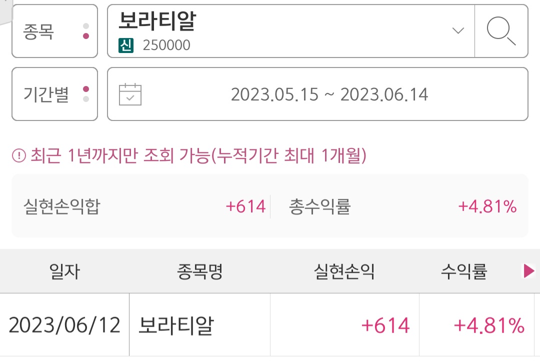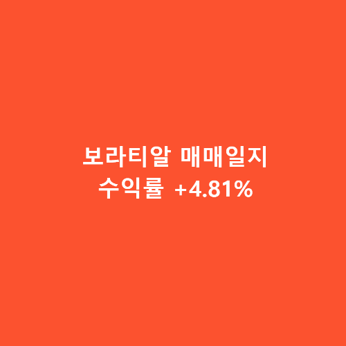 매도 후 보라티알 주가가 상승했지만 매매 시나리오대로 매매했기에 아쉬움은 없습니다. 솔직히 아쉬움이 하나도 없다면 거짓말인 것 같고 크지 않다고 하는 게 맞을 것 같습니다. 아무튼 제 계획 이외의 영역은 제가 어떻게 할 수 없는 부분이라고 생각합니다.