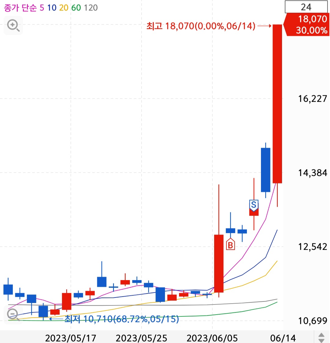 어쨌든 보라티알은 소금 관련주로 주가가 급등했습니다. 전체 매출에서 소금 매출이 얼마나 차지하는지는 모르겠지만 일단 소금 관련주로 엮였으니 단기 또는 스윙 관점에서 투자해도 될 것 같다고 생각했습니다.