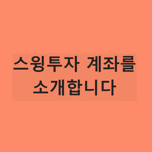 이번이 4번째 증권계좌 소개입니다. 앞에 3개 계좌를 펀드라는 이름으로 소개했다면 이번엔 그냥 스윙투자용 계좌입니다. 투자 초보자기 때문에 이 계좌는 연습용 계좌이도 하면서 앞으로 핵심이 될 계좌이기도 합니다. 아직 저만의 투자 방식을 찾지 못했고 투자 방식들을 배우면서 하나씩 적용해보고 공부하는 계좌입니다.
