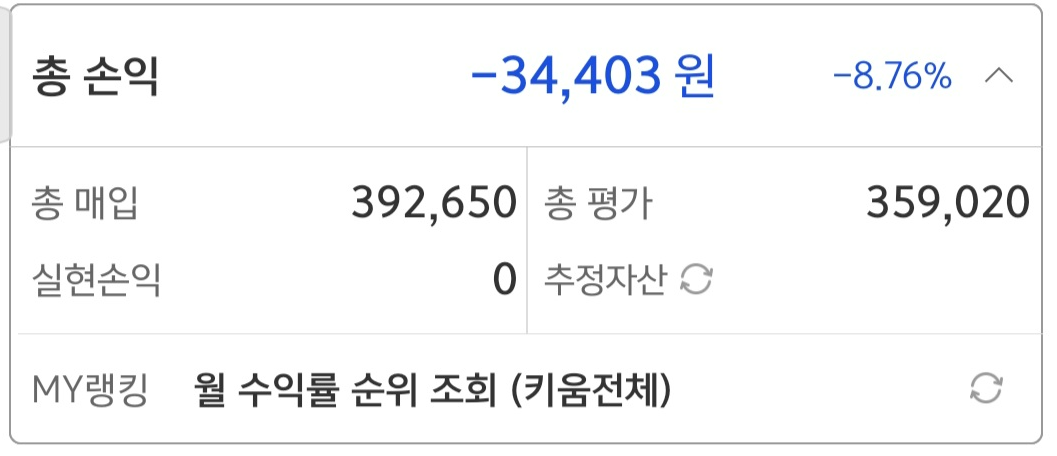 참고로 모든 증권 계좌의 돈은 없어져도 제 삶에 영향을 주는 금액이 아닙니다. 물론 소액이라도 속은 쓰리겠지만 말입니다.