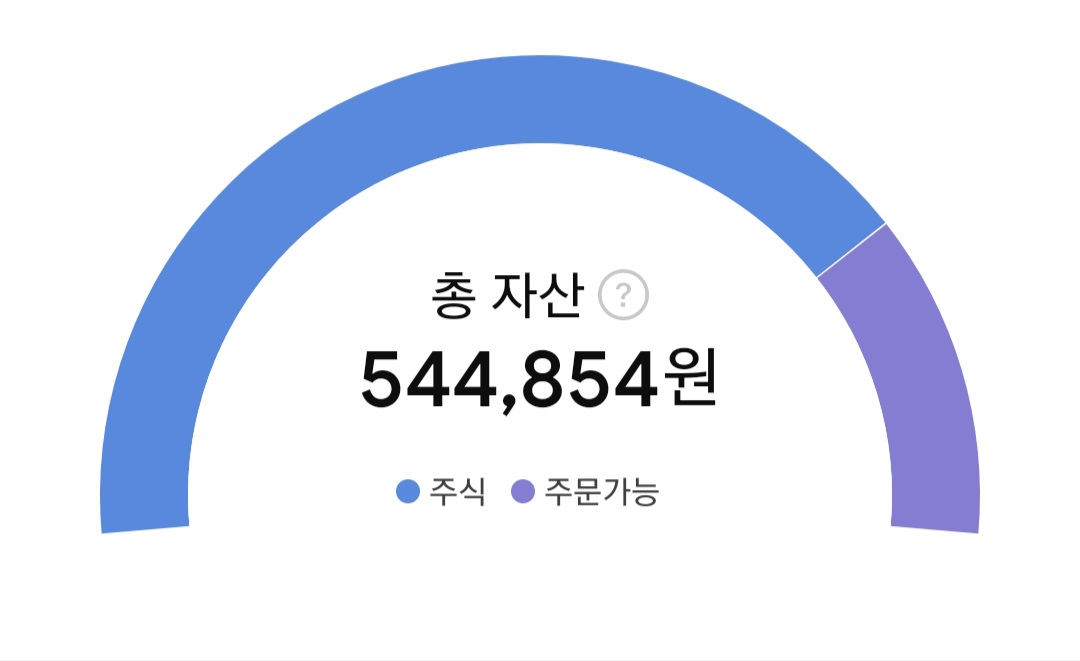 주식 보유 421,204원 그리고 원화 보유 123,650원으로 총자산은 544,854원입니다. 현재 달러 보유는 없습니다. 투자 원금 대비 44,854원 플러스로 9% 조금 안되는 수익률입니다. 현금 보유보다 주식 보유가 많다 보니 총자산과 수익률은 매일 바뀌지만 단순 계산해보면 현재 보유 주식 수익이 +24,556원이니 지금까지 실현 수익이 2만원 정도 되는 것 같습니다.