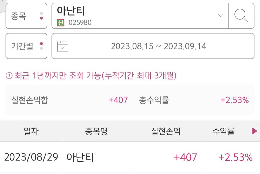 아난티 매매기록 및 주가 : 수익률 2.53%