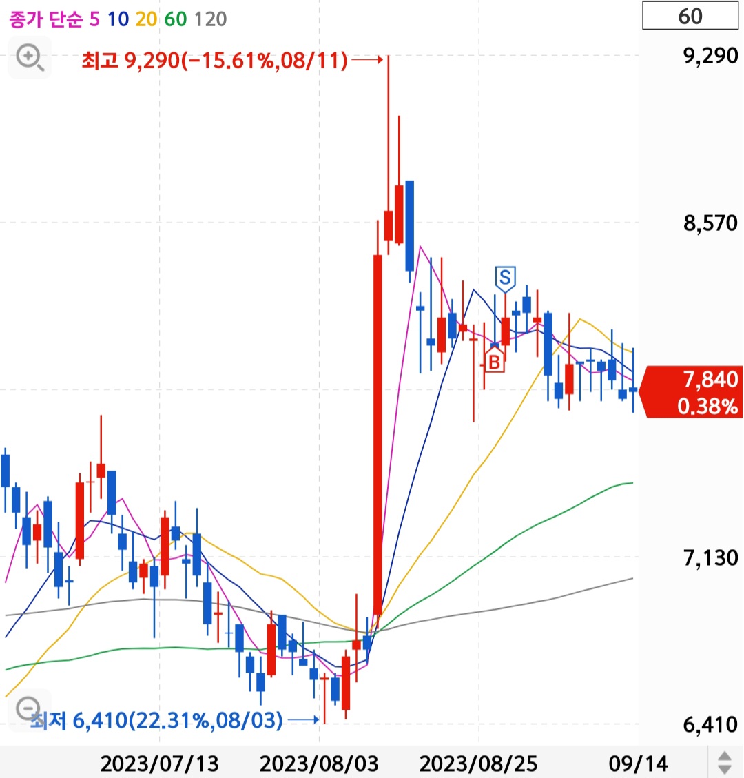 분양 호조로 아난티 영업이익이 34배 늘었다는 소식에 주가가 상승했습니다. 중국 한한령 해제도 영향을 준 것 같습니다. 개인적으로 한한령 해제보다는 영업이익 증가 이슈 때문에 매매를 결정했습니다.