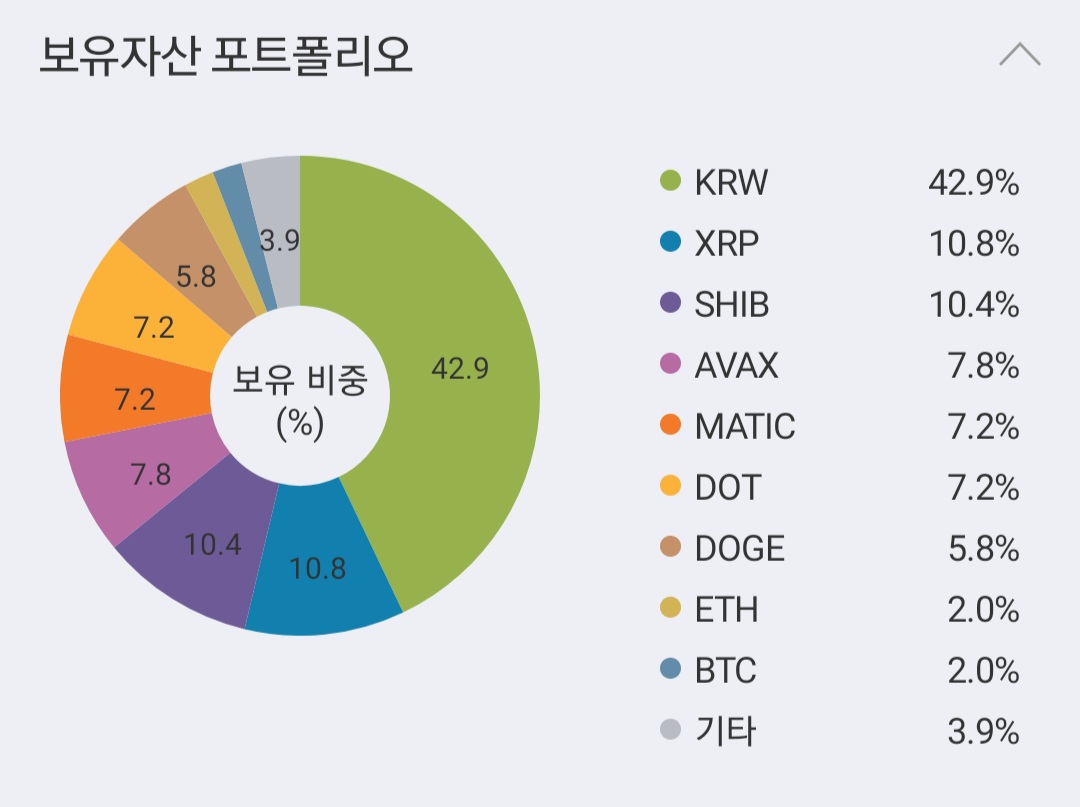 참고로 지금까지 총 4만원을 인출했으니 투자원금 대비 10% 넘는 수익률입니다. 뭐 코인 수익률치고는 낮은 수익률이라고 할 수 있지만 계획대로 투자하고 있기에 만족하고 있습니다. 그리고 현재 보유자산은 아래와 같습니다.