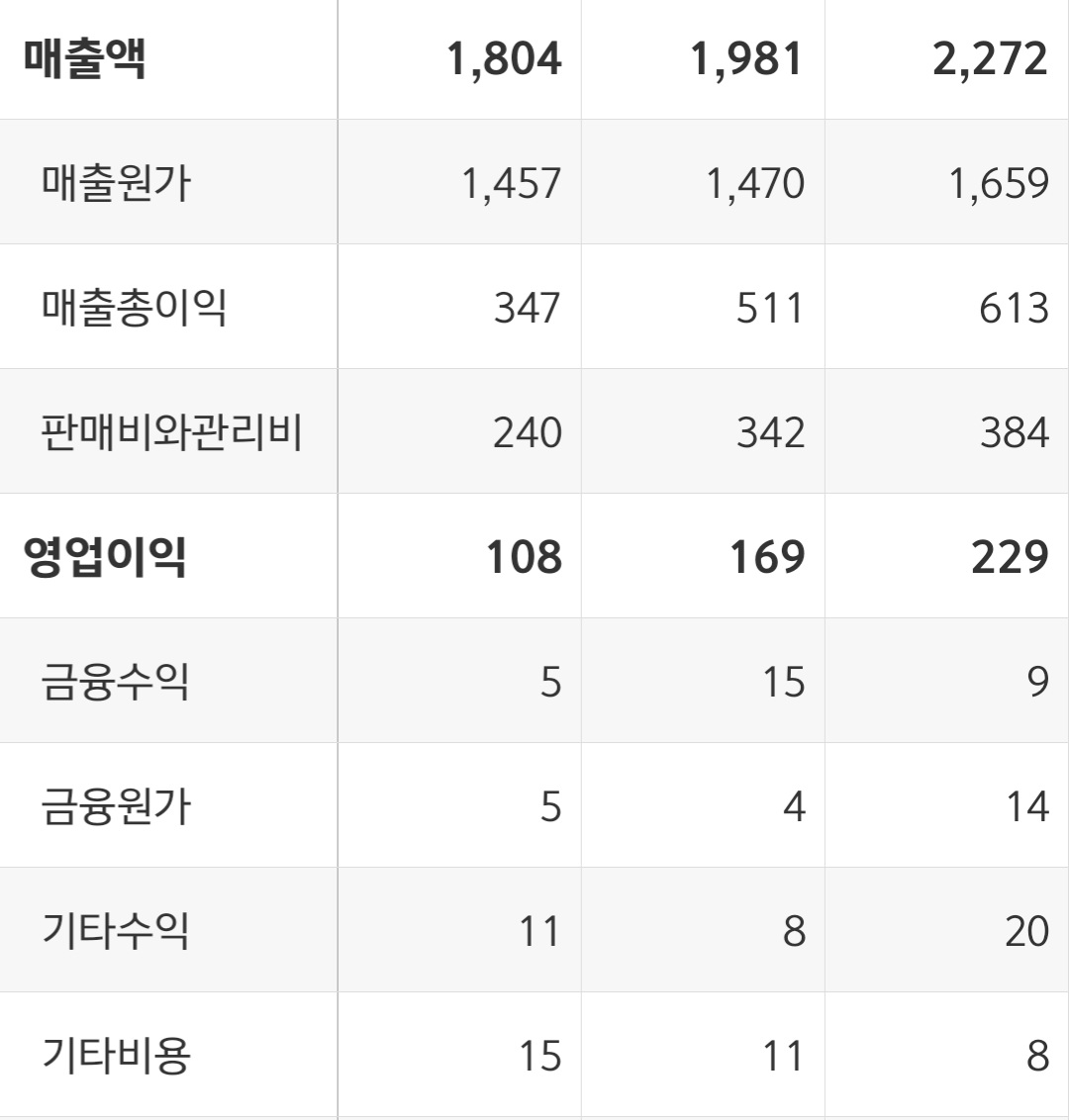 매출, 이익은 매년 조금씩 증가하는 추세입니다. 일단 적자 기업은 아닙니다. PER나 PBR, 자산, 부채 등은 자세히 보지 않았습니다. 장기투자가 아니라 스윙 목적이기 때문에 참고로 보기는 하지만 깊게 자세히 보지는 않습니다.