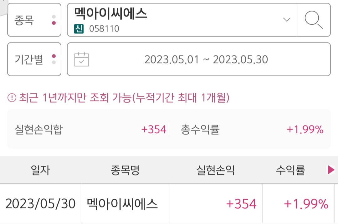 의료기기 관련주 멕아이씨에스 매매기록 : 수익률 +1.99%
