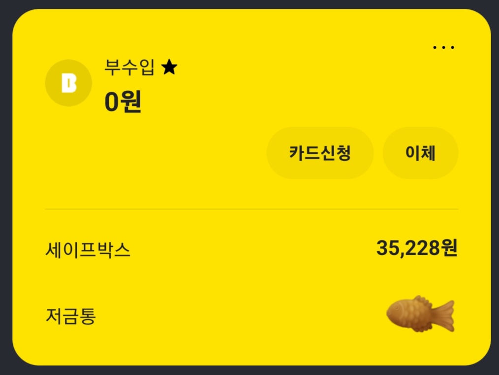 카카오뱅크 계좌는 부수입 계좌와 예금계좌입니다. 아직 부수입이 거의 없지만 부수입이 생길 거라는 믿음을 가지고 만들었습니다. 주식이나 투자 실현 수익 일부도 부수입 통장으로 옮깁니다. 적은 금액이지만 부수입, 남은 용돈으로 저축도 하고 있습니다. 이것 역시 다음에 따로 포스팅해야겠습니다.