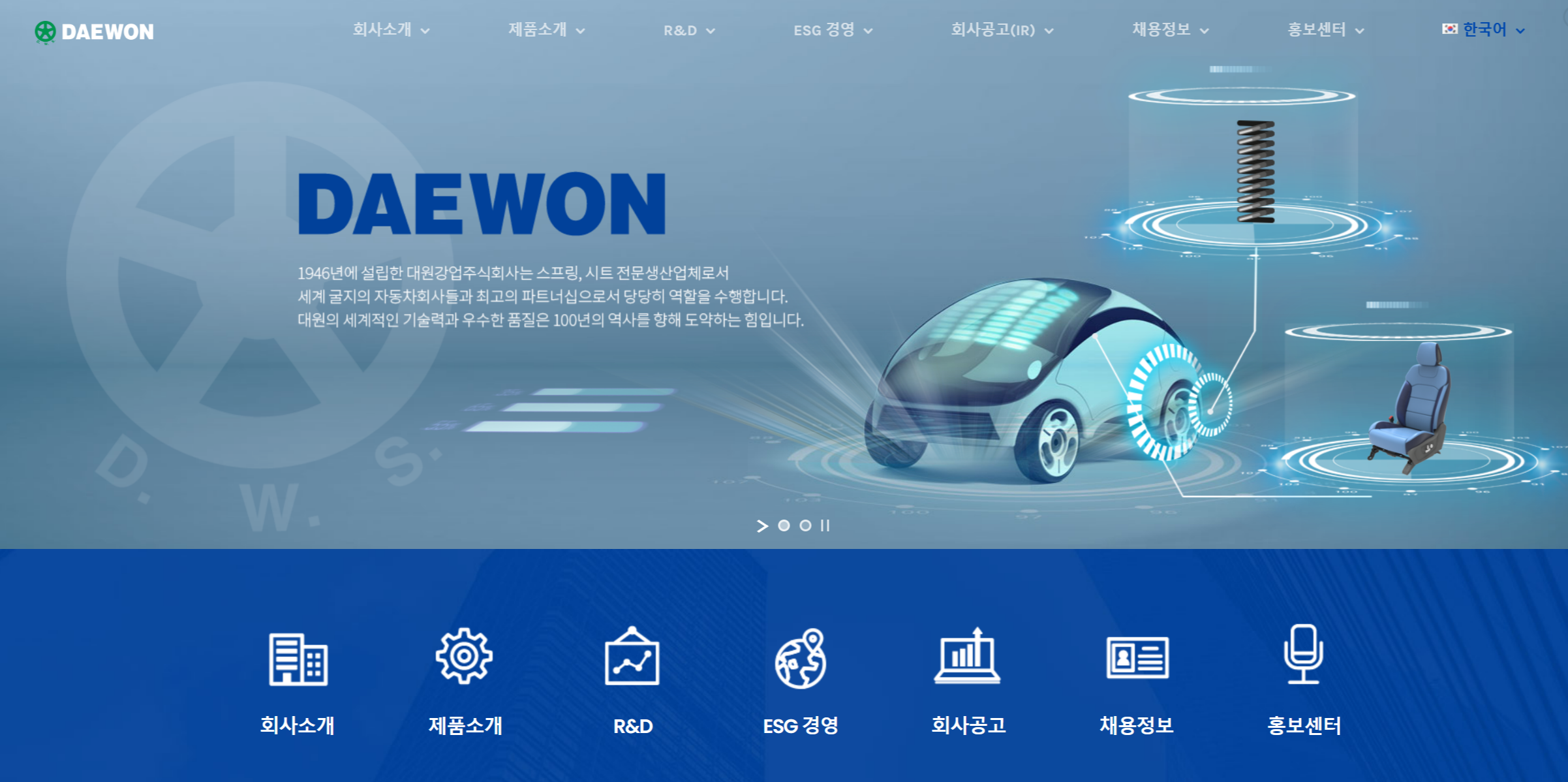 지분은 뭐 그렇고 대원강업은 1946년에 설립했으며 자동차용 스프링, 시트 등 자동차 부품을 제조하는 기업입니다. 업종은 자동차용 신품 조향장치 및 현가장치 제조업으로 되어있습니다. 솔직히 처음 들어보는 기업인데 미국, 중국, 인도 등 해외에도 진출하고 역사도 오래된 기업입니다.