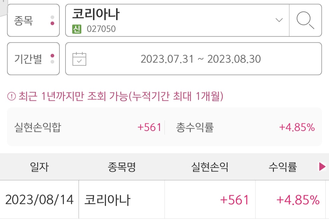 코리아나 주가 및 매매기록 : 수익률 4.85%
