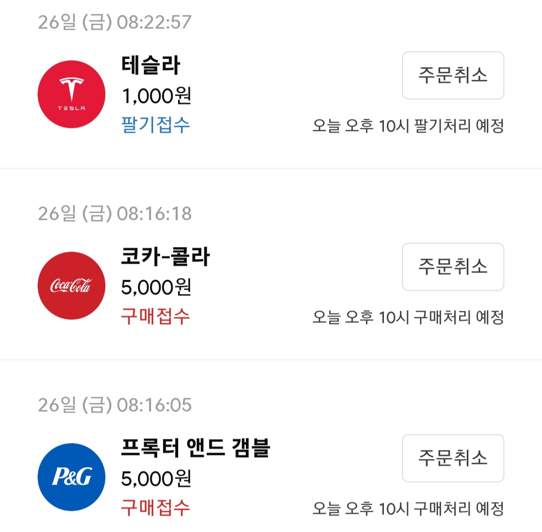 추가 매수 타이밍을 보고 있었는데 기회가 없어서 매수하지 못했던 코카콜라를 오랜만에 매수했습니다. 아직 목표 금액까지 매수하지는 못했습니다. 존슨앤드존슨과 프록터 앤드 갬블은 이제 거의 목표했던 금액까지 매수했습니다. 그리고 테슬라는 조금씩 상승하는 것 같습니다. 물론 일시적인 상승일 수도 있습니다. 어쨌든 목표 금액까지 매수하지는 못했지만 상승했으니 1,000원 매도했습니다.