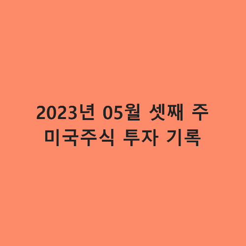2023년 5월 셋째 주 미국 주식 투자 기록을 해봅니다. 그러고 보니 5월도 벌써 절반이 지났습니다. 곧 무더운 여름이 올 듯합니다. 더우나 추우나 주식 시장은 항상 열리니 계속 공부하고 투자하고 기록해야겠죠?