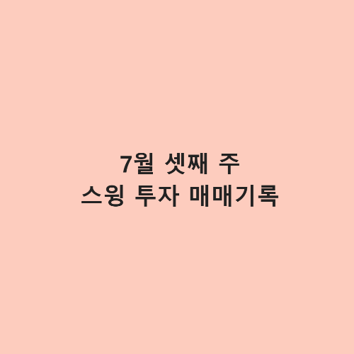 7월 4주차가 끝나가지만 하지 못했던 3주차 스윙 투자 매매기록을 합니다. 4주차 기록은 늦지 않게 해야겠습니다. 이런저런 핑계로 미루다 보니 끝없이 미뤄지는 것 같습니다.