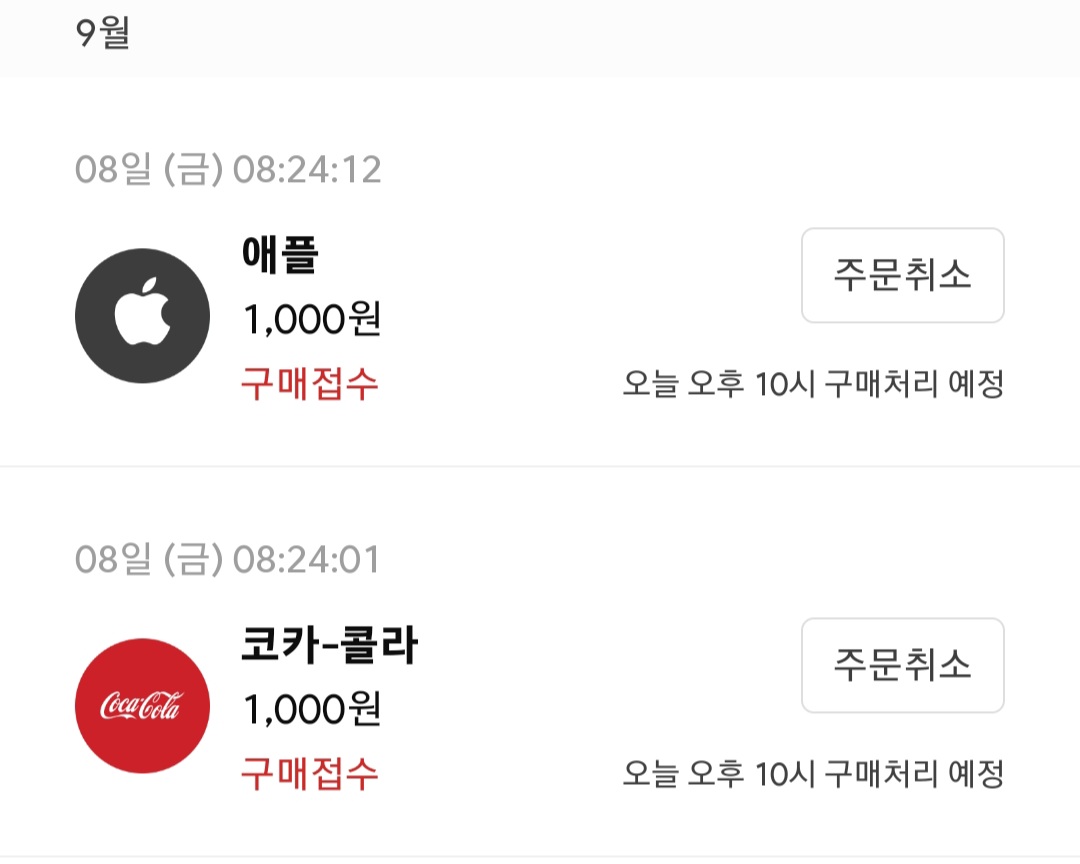 이번 주는 매매가 거의 없습니다. 매도는 없고 애플 1천원, 코카콜라 1천원 매수만 있습니다. 보유한 종목들 대부분이 하락했지만 리밸런싱할 정도로 움직인 종목은 애플, 코카콜라 외에 없었습니다.